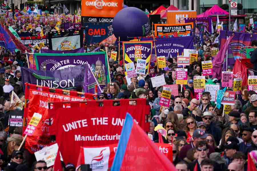 La manifestación de 500.000 personas el pasado 28 de marzo es un soplo de aire fresco y vitalidad. Ahí radica su importancia, iniciar un camino para derrotar a la extrema derecha. La movilización fue convocada desde abajo, con trabajo militante y una gran agitación. Cientos de comités en barrios y localidades han hecho un despliegue de fuerzas para concluir en una jornada en donde se prepararon 110 caravanas de trenes y autobuses desde distintas ciudades para converger en Londres, o puntos de quedada en los diferentes barrios de la ciudad. Cientos de colectivos, asambleas, organizaciones, etc., han sido parte activa de la movilización, distribuyéndose en diferentes bloques: migrantes, antirracistas, mujeres, estudiantes, ecologistas, LGTBI, socialistas, antibelicistas... Destacó la gran presencia sindical, gracias al impulso del movimiento obrero desde las bases, lo que obligó a las direcciones de los sindicatos a convocar activamente la jornada.