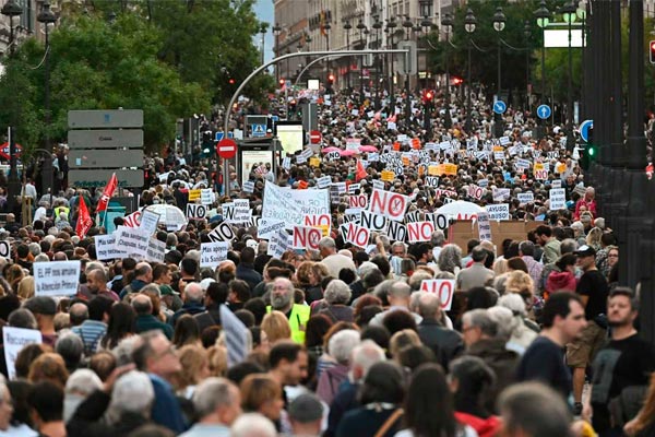 La presidencia de Ayuso se ha traducido en una degradación escandalosa de nuestros barrios, en la destrucción y privatización acelerada de la sanidad, la enseñanza y el conjunto de los servicios públicos, en los fabulosos negocios que hace la élite empresarial mientras los índices de desigualdad y de pobreza en la comunidad escalan a niveles asombrosos.