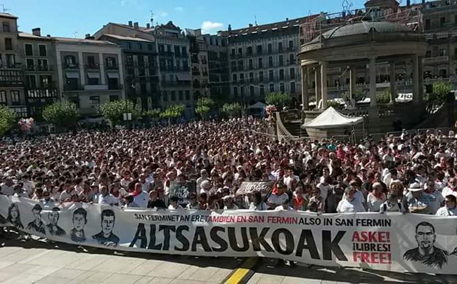 El 14 de julio, una concentración masiva abarrotó la plaza castillo de Pamplona el último día de San Fermín para mostrar su apoyo a los jóvenes de Altsasu, encarcelados injustamente por la Audiencia Nacional y a los que la fiscalía pide más de 50 años de prisión.