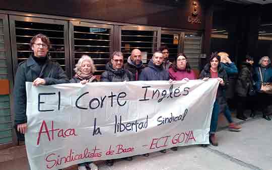El pasado mes de noviembre se celebraron elecciones sindicales en El Corte Inglés de Goya (Madrid), excluyéndose ilegítima e ilegalmente la candidatura de Sindicalistas de Base (SB). La razón: evitar una alternativa sindical consecuente que pueda hacer frente a los abusos de la empresa.
