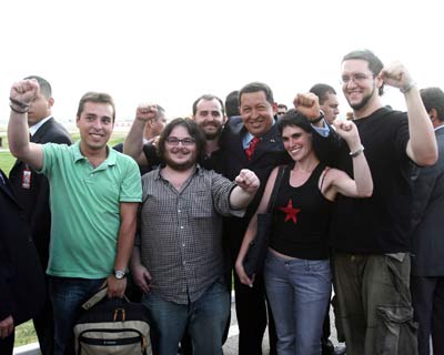 En la Base militar de Torrejón, desde donde el Presidente regresaba a Venezuela, Chávez se encontró con una delegación de representantes del Sindicato de Estudiantes, Manos Fuera de Venezuela y la Corriente Marxista El Militante.